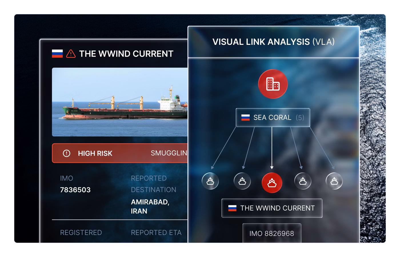 Windward surfaces behavioral red flags such as deceptive shipping practices, high-risk routing, ship-to-ship transfers, and ownership changes that may indicate sanctions exposure. This allows legal teams to identify risks early, strengthen due diligence, and advise clients before deals progress too far.