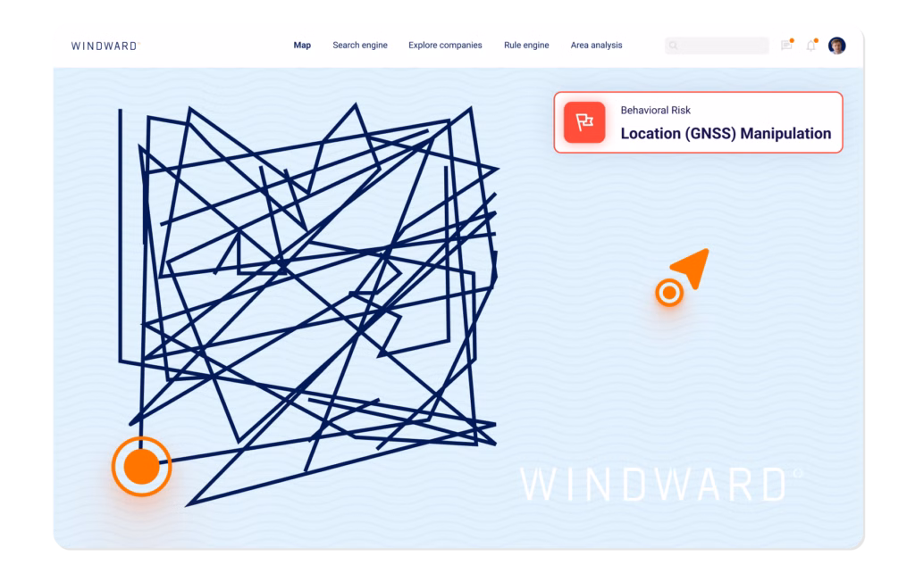 Location (GNSS) manipulation is different. Bad actors continue to transmit data as usual, but they manipulate the information behind the scenes. This makes the vessel appear to be in a legitimate location, when it is actually somewhere else. Windward calls this phenomenon “hiding in plain sight.”